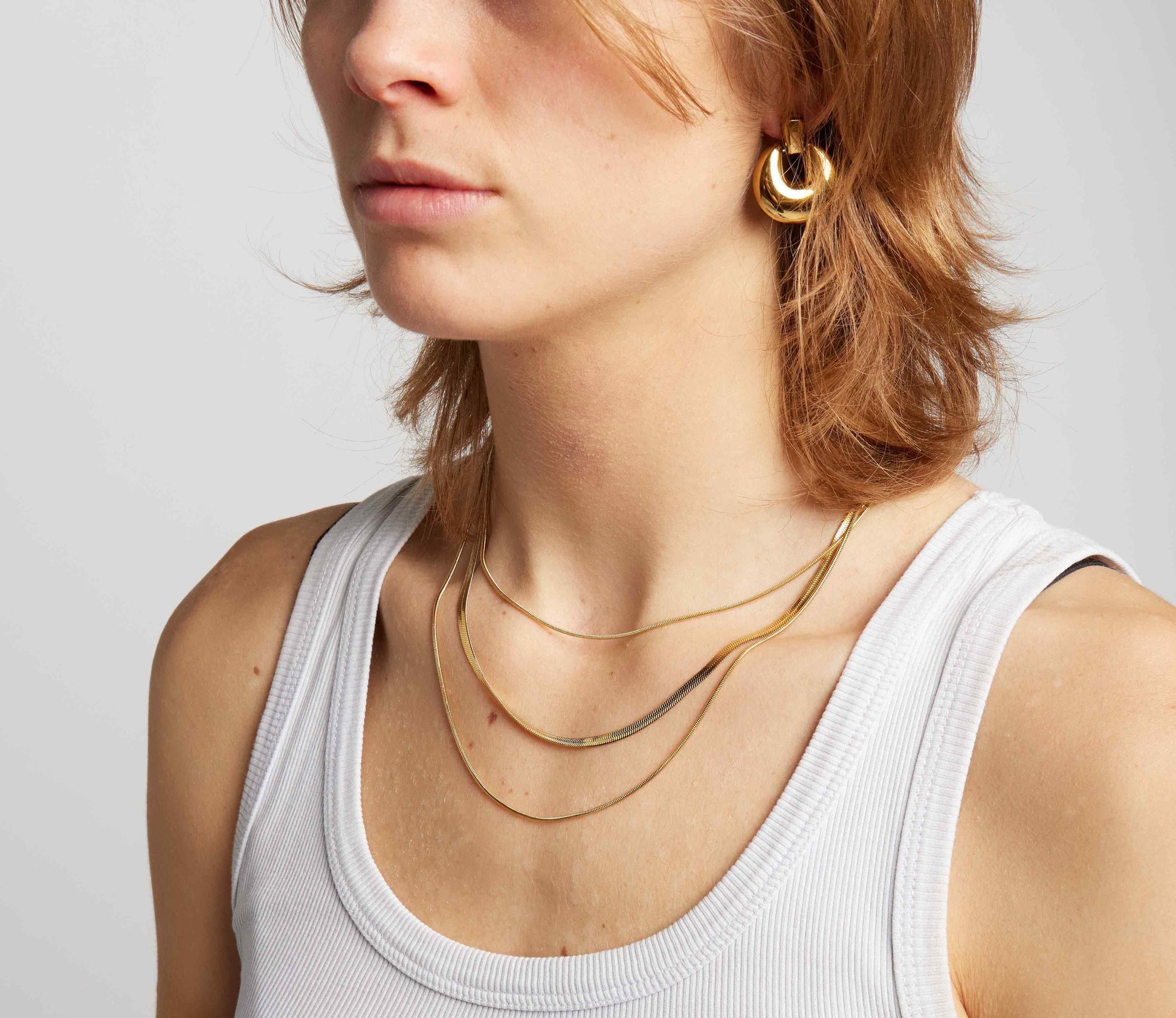 Elevate your style effortlessly with our Astra Multilayer Necklace—a game-changer for those seeking the beauty of layered necklaces without the styling complexity. This versatile piece combines three chains in different heights, including a herringbone chain, seamlessly creating a chic and pre-styled layered effect. Ideal for those who want to effortlessly achieve a sophisticated look, the Astra Multilayer Necklace is a go-to accessory that simplifies the art of necklace layering, ensuring you always look stylish without the fuss.