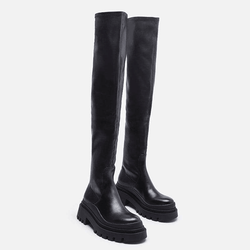 This beautiful, easy-going thigh-high boot will be your go-to. It features a slimming fit with a comfortable feel that makes it ideal for any occasion. Meet your thigh-high boots halfway with a pair of belted wool or leather shorts. The bottom adds more intrigue than a pair of blue jeans and allows you to extend the shelf life of your favourite summer bottoms.
