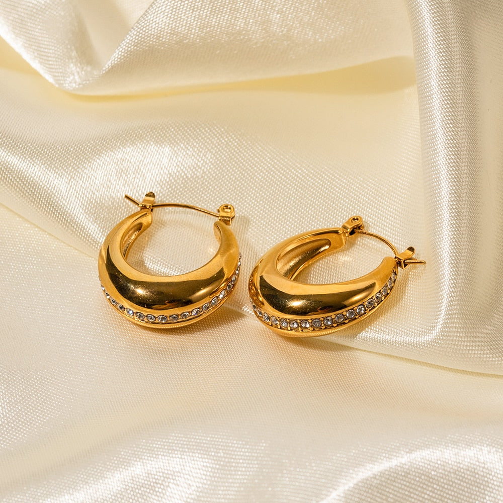 Deliciously charming, golden croissant-shaped earrings adorned with lustrous gemstones for a touch of luxury and playfulness. Perfect for any occasion.