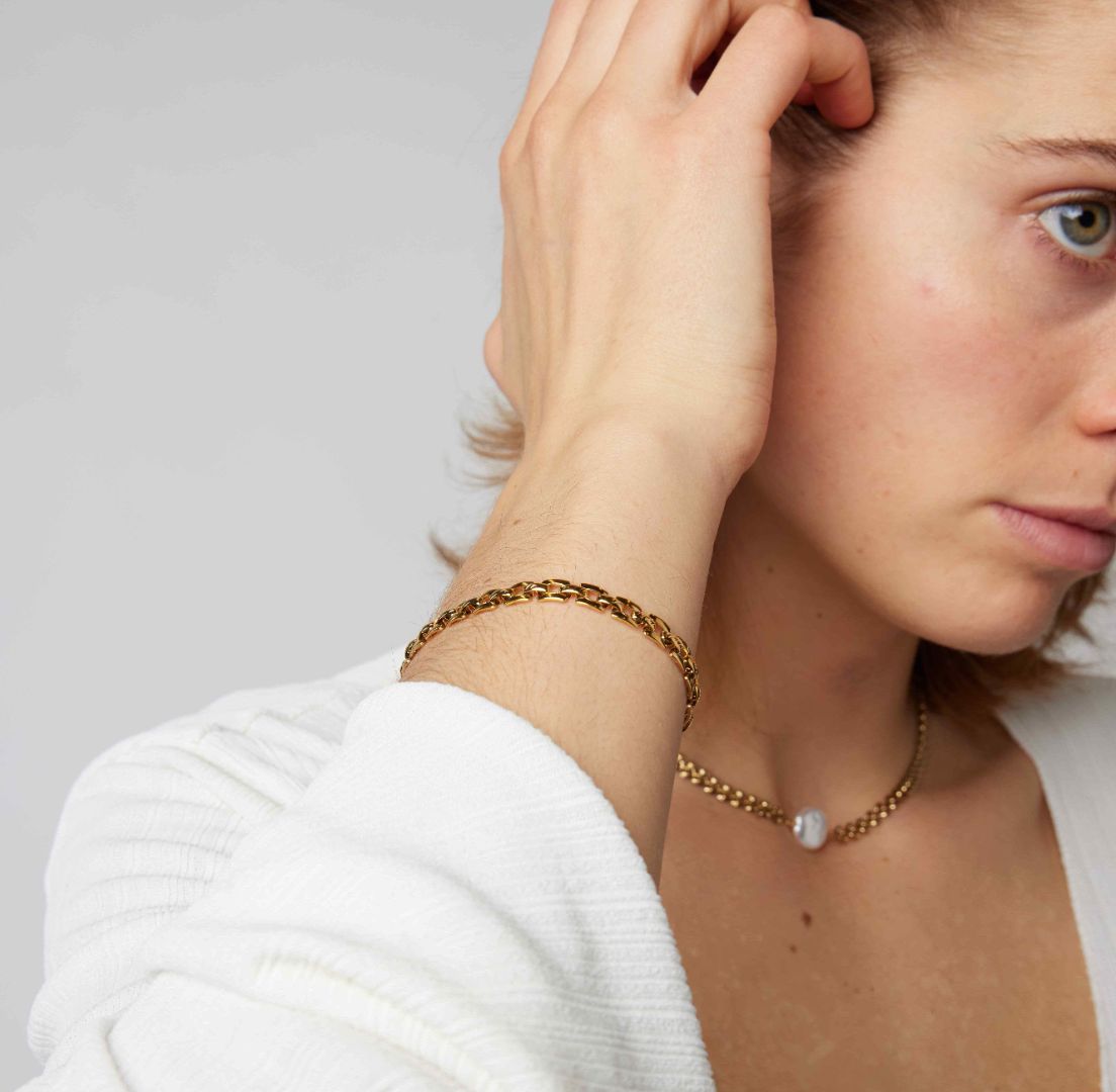Drape your wrist in the distinct allure of the Esmeralda Bracelet—a unique chain bracelet designed to make a statement. Its individuality shines through, adding a touch of modern charm to your ensemble. Wear it solo for a standout look or pair it with other bracelets to curate a collection that reflects your unique style.
