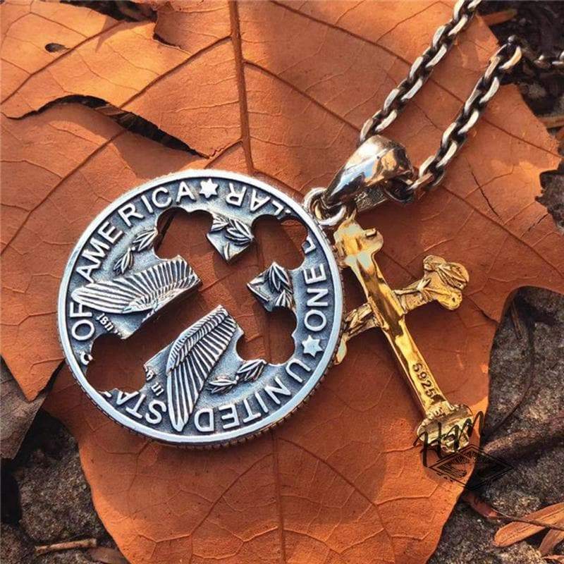 GENUINE CROSS STRAY COIN SILVER PENDANT