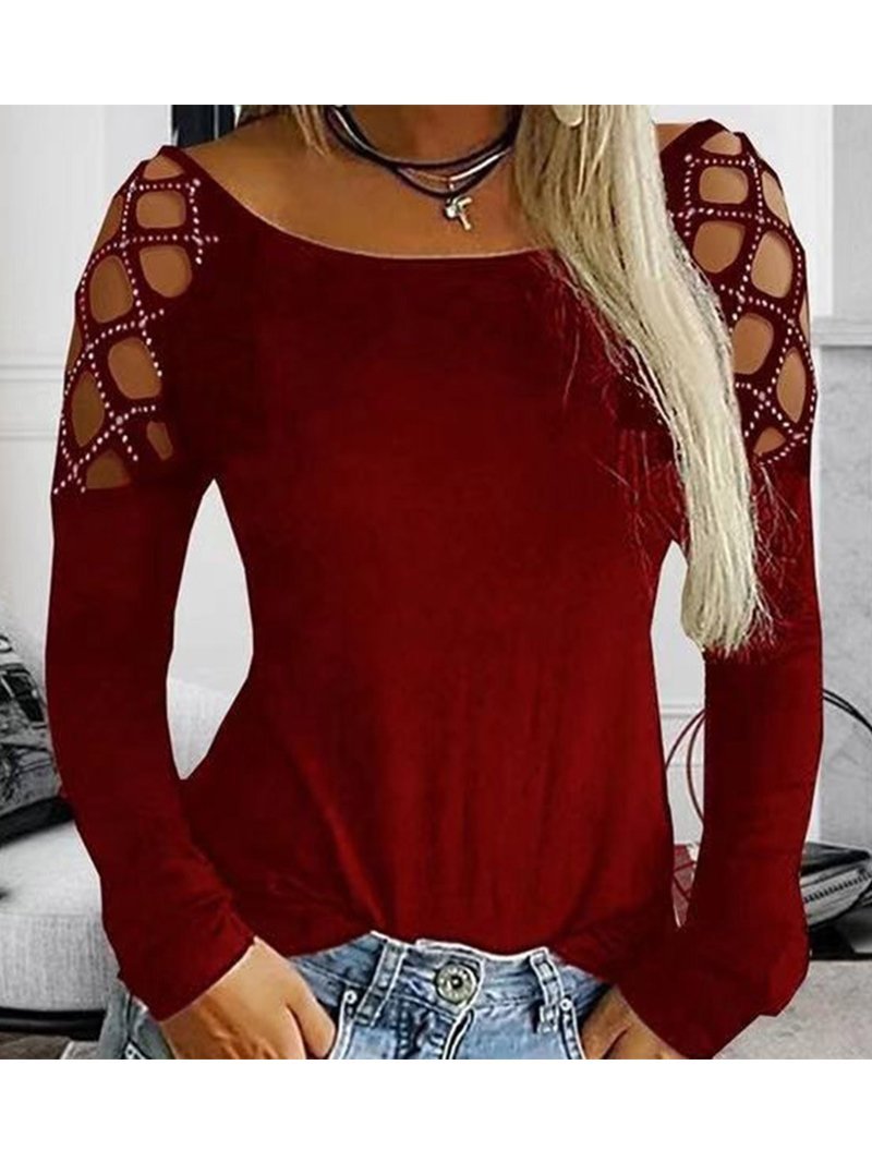 Hollowed-out Rhinestone Long Sleeve T-shirt