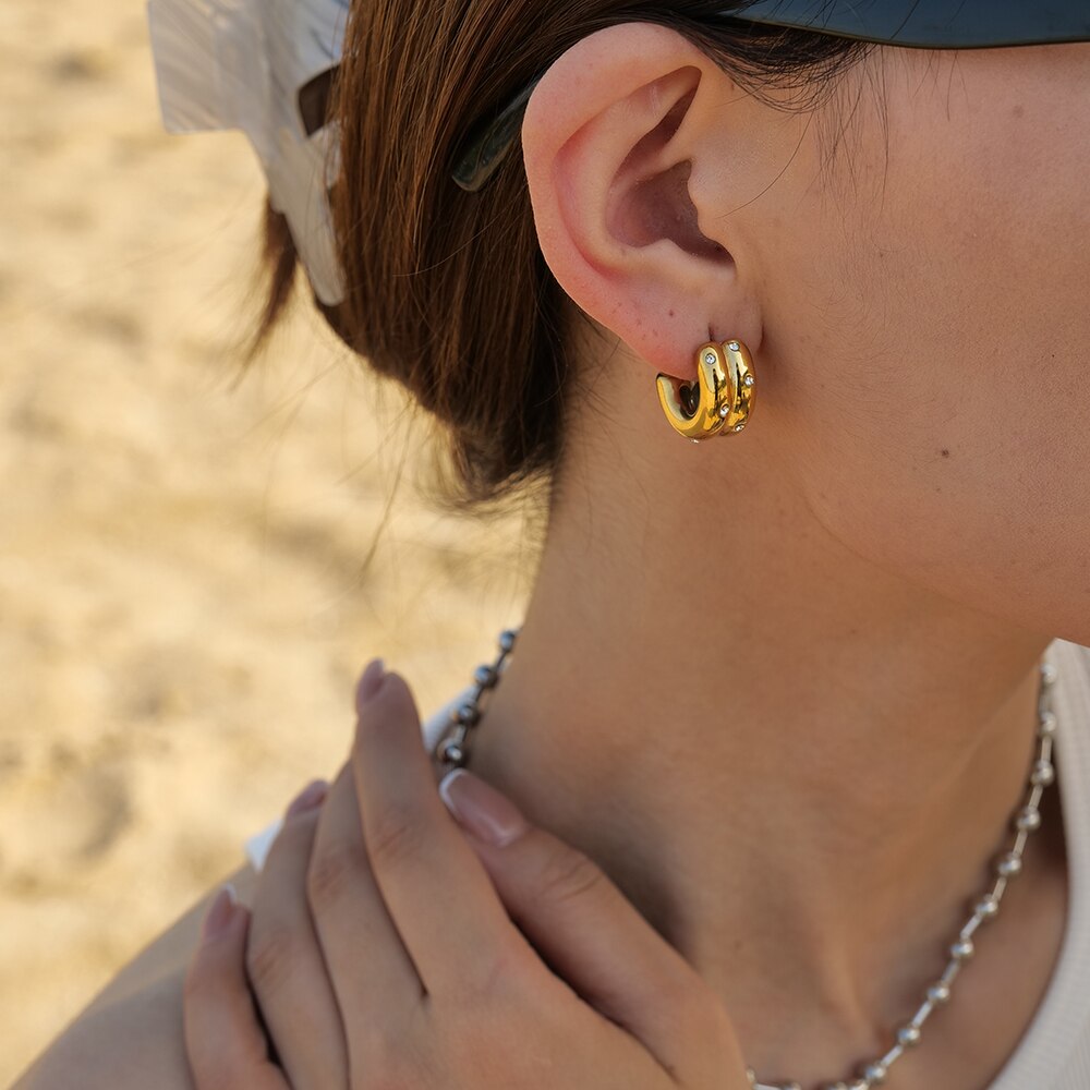 Classic stud earrings with a halo of diamonds, adding brilliance and timeless allure.