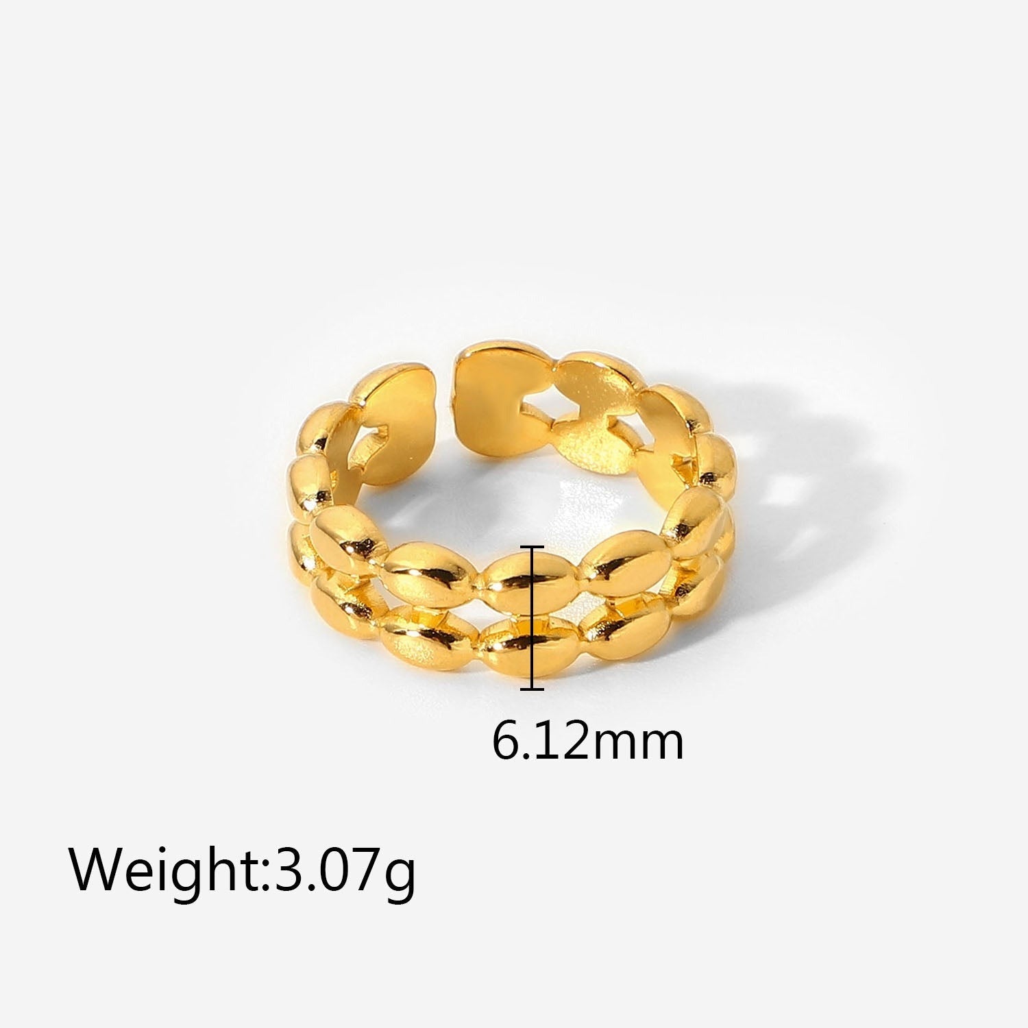 This gorgeous stackable ring is composed of two rows of gold beads with a smooth finish. Adjustable and lightweight, this gold ring is an easy way to make a big statement without being overpowering.