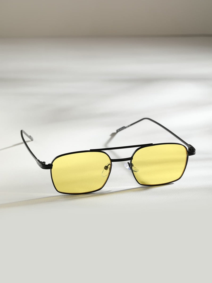 The dark-hued metal front is equipped with a decisive double bridge and yellow polarised lenses, elements that add character to any look. The lightweight injected temples create a sophisticated mix of contrasting materials, ensuring this style is a true must-have.